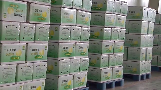 在泊头,另外一家大型果品贸易企业三万多吨皇冠梨已经销售一空。公司副总于立祥说,现在和他们做生意的电商越来越多,从前年开始,他们线上销售量从5000多箱逐渐增长到今年的30万箱。2019年的采购季,这些有合作关系的生鲜电商平台和精品水果店的采购商还要继续扩大采购量,也有新的合作采购商和他们在洽谈。