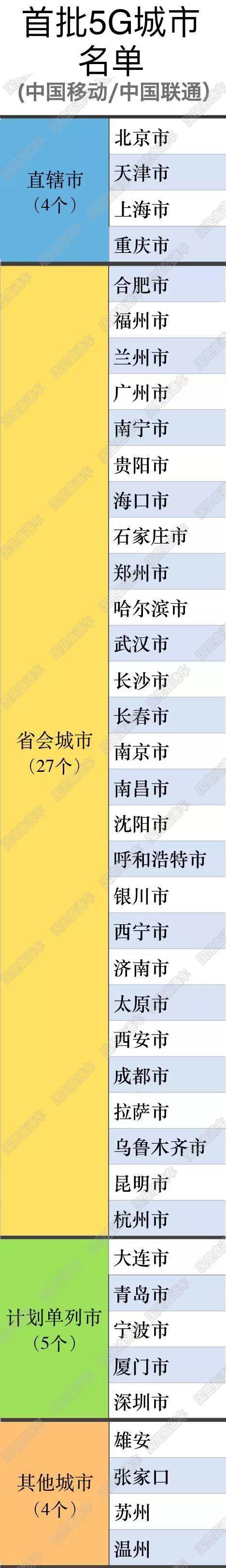 好在此前三大运营商公布了5G试验网建设试点城市。中新网记者对此进行了梳理,这些城市包括北京、雄安、上海、天津、深圳、重庆、广州、成都、武汉、苏州、南京、贵阳、福州、郑州、沈阳等。