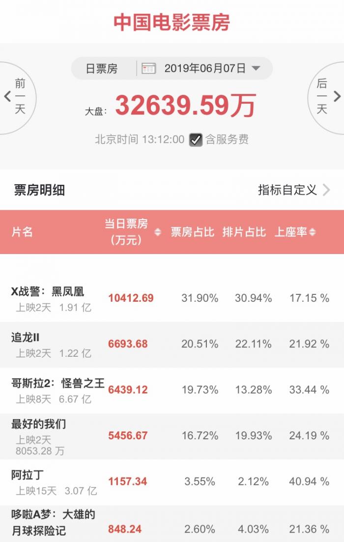 (配图来自国家电影专资办旗下APP中国电影票房)