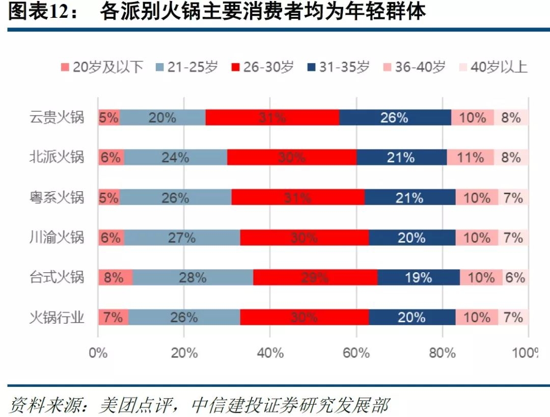 根据美团大数据,20-40岁之间的火锅消费用户占比近90%,年轻化趋势非常明显。