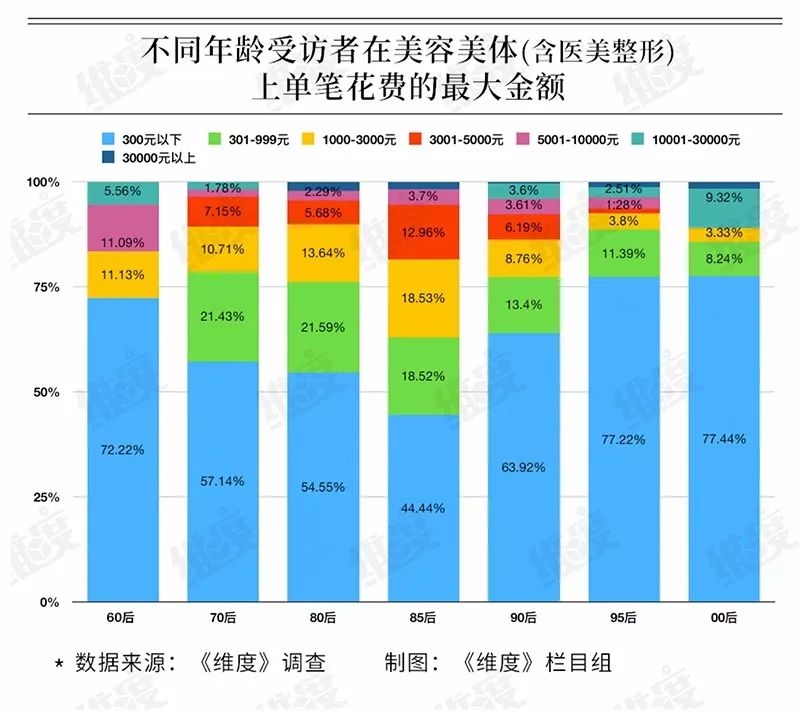 来自第三方机构的最新调查问卷显示,85后最舍得为“颜值”买单;00后微整形花费高;近三成人认为颜值直接影响收入。