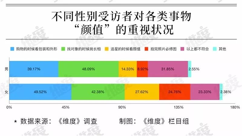 参与此次调查的人群,对颜值的影响力这个问题,尽管看上去都比较客观。但是,有54.39%坦诚自己属于“外貌党”。