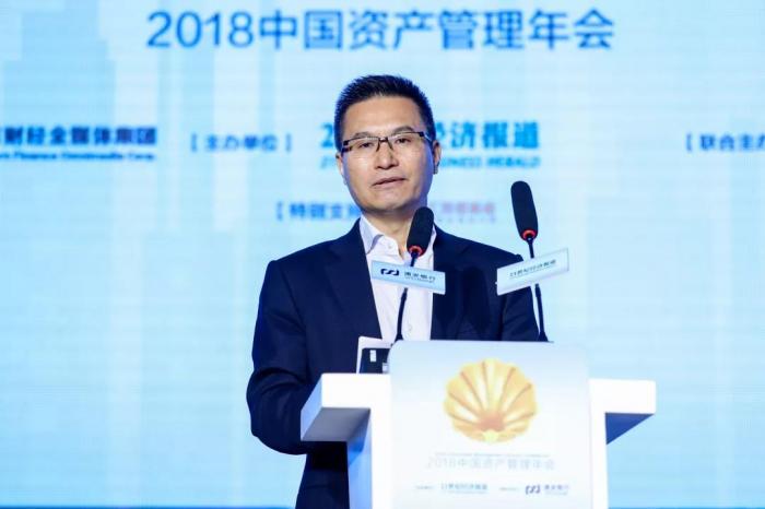 图为中国保险资产管理业协会执行副会长兼秘书长曹德云在2018中国资产管理年会上做演讲