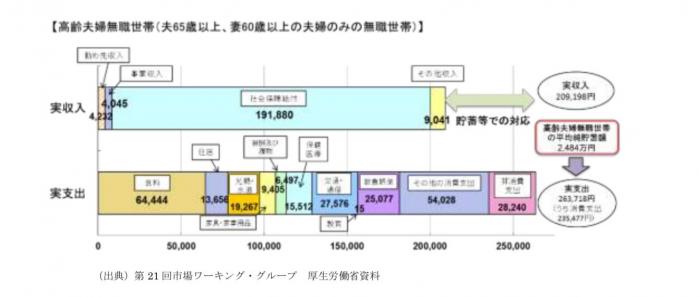 (无工作的高龄夫妇所面临的财务缺口 来源:金融厅报告)
