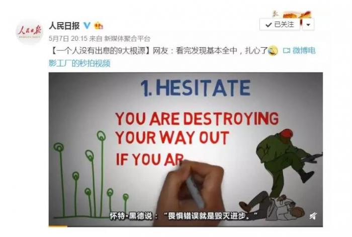 最近人民日报官微发了一条哈佛大学的科学研究视频,分析出一个人没有出息的9大根源。
