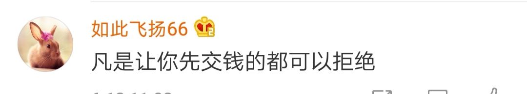 网友提醒:凡是让先交钱的都可以拒绝