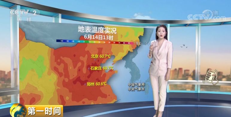 实际上,北方天气在14日已初现“飙升”迹象。从中央气象台的数据来看,华北中南部、黄淮等地都出现了35℃或以上的高温天气。比如北京,13日的最高温还控制在30℃,但一夜之间,最高气温在14日蹿升至35℃,可谓热气逼人。而根据监测,北京、石家庄、郑州、济南等城市在昨天下午1点,地表温度先后超过60度,简直像火烤一般。