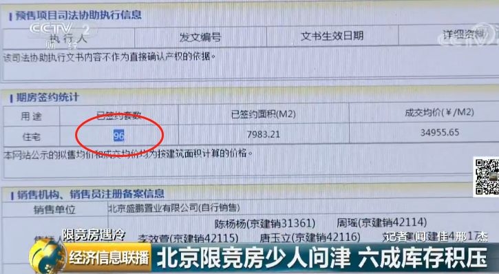 在北京市住房和城乡建设委员会官网上,央视财经记者查询到,截至6月12日,该楼盘的总成交量仅为96套,只相当于其中一栋楼在售房源的数量,也就是说,九成的房子都处于待售状态。