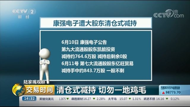6月10日,康强电子公告,第九大流通股股东凯能投资,减持约764.6万股,减持后剩余0股。