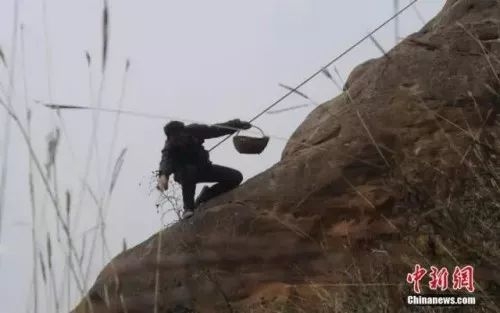 用绳子绑在身上去悬崖边捡酸枣卖钱