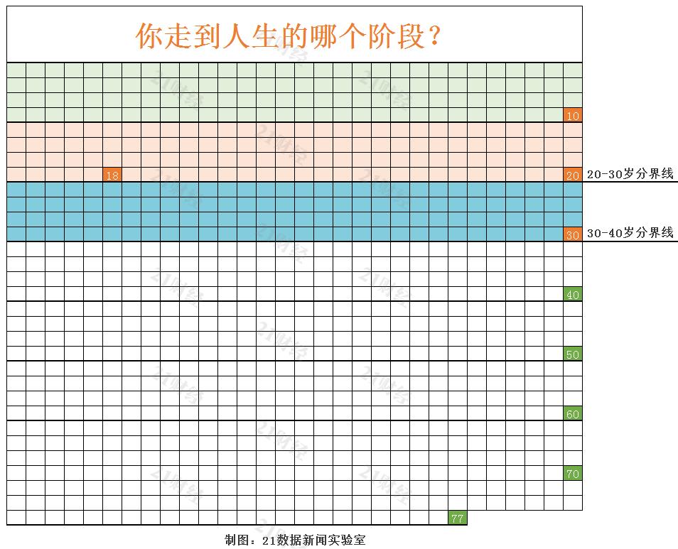 运用同样的方法,我们来描绘一下不同年龄阶段,所走过的格子。