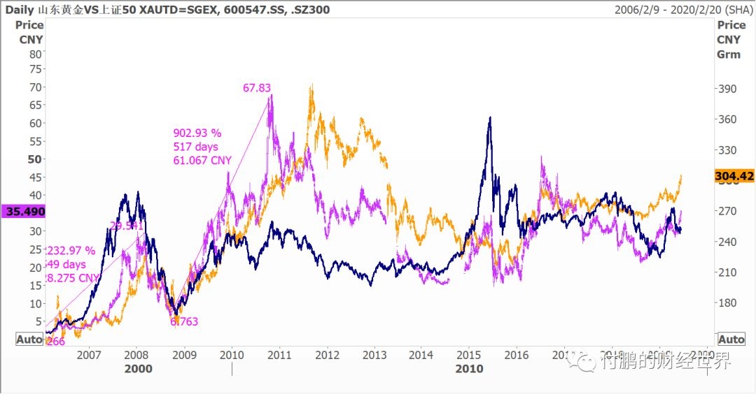 国内的看一圈其实就只有山东黄金非常吻合以上条件,基本山东黄金的股价变量分拆一下就是:A股大盘和黄金走势;