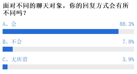 近9成参与投票的网友表示面对不同的聊天对象时,回复的方式也会有所不同。