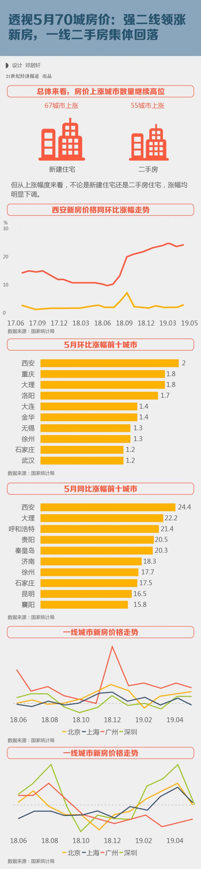 值得注意的是,2019年以来持续领涨70城新房价格同比涨幅的西安,在5月还成为了70城中环比涨幅第一的城市,在同比和环比两个维度涨幅领先。