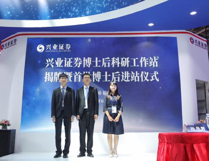 福建省人力资源和社会保障厅、福建省地方金融监督管理局、中国证监会福建监管局相关负责人,兴业证券董事长杨华辉、总裁刘志辉、监事会主席王仁渠、副总裁胡平生、副总裁黄奕林等出席仪式。人力资源与社会保障厅相关负责人和杨华辉董事长共同为兴业证券博士后科研工作站揭牌,来自复旦大学、上海交通大学、西安交通大学的四位优秀博士成为兴业证券博士后科研工作站的首批进站科研人员。