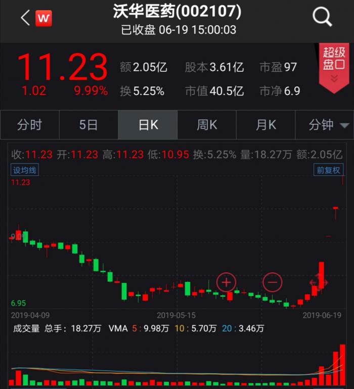 6月19日,风险提示公告依旧没有挡住火热的投资者,沃华医药成功实现四连板,报收11.23元,股价创一年以来新高。