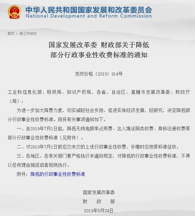 近日,国家发展改革委、财政部发布通知:从7月1日起,将降低部分行政事业性收费标准,包括因私普通护照、往来港澳通行证、受理商标续展注册费、卫星通信系统频率占用费等收费标准都将有所下调。