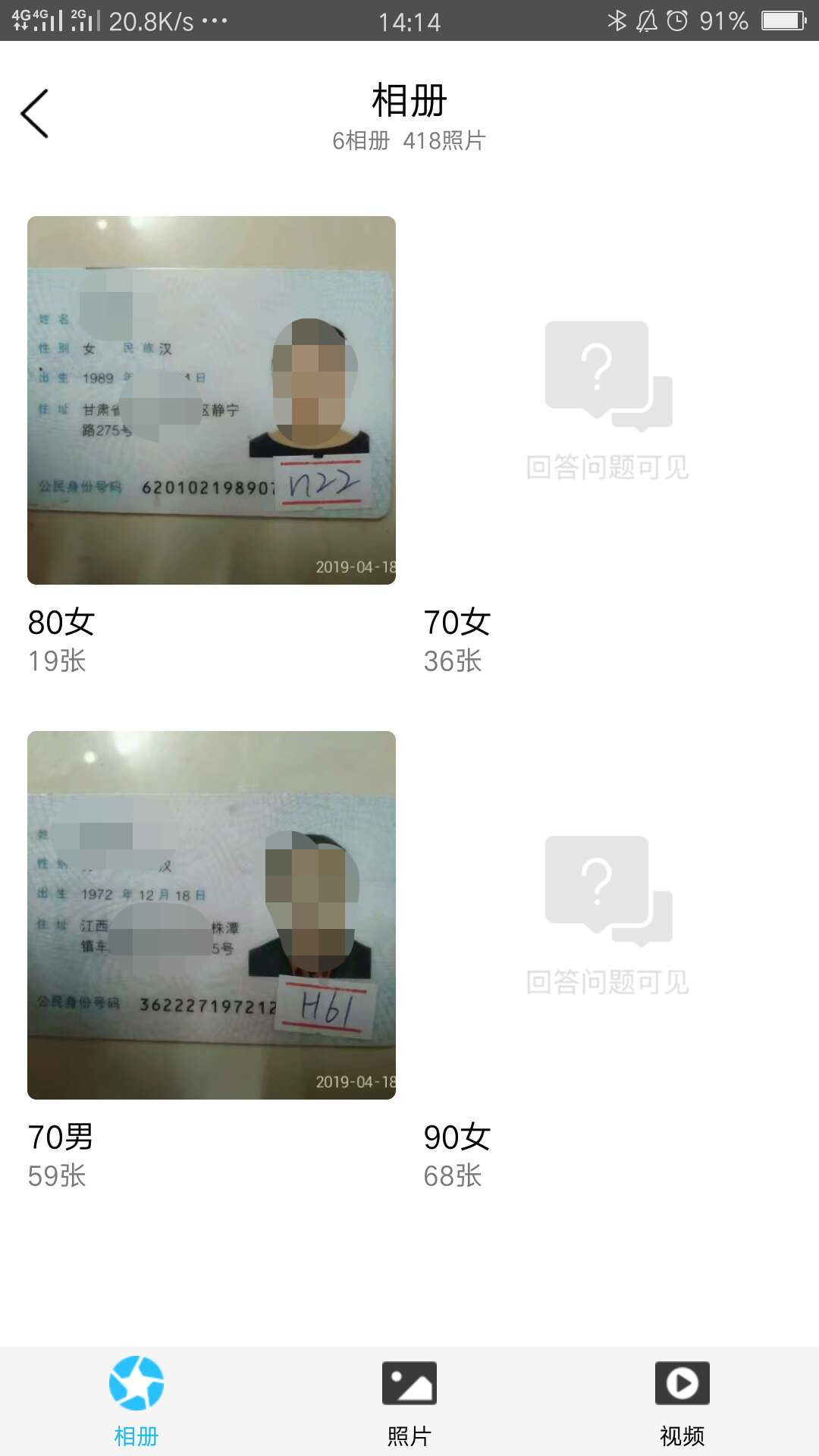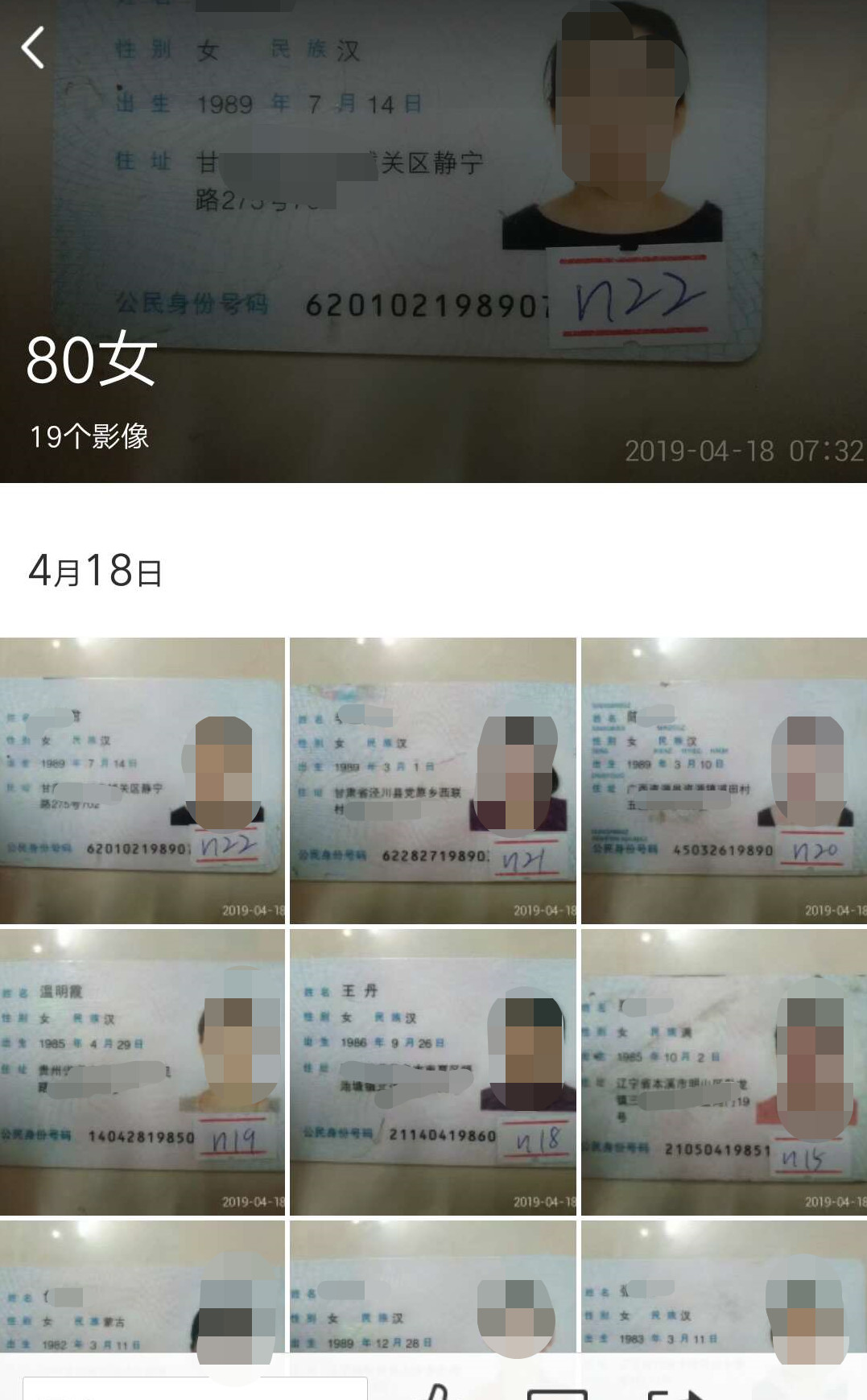 当记者提出“想要购买身份证注册公司”之后,对方让记者添加另一个名为“二代(空间挑选)”的QQ号,并提供相册密码给记者。在该QQ空间的相册中,建有“70后女”“80后女”“90后女”“70后男”“80后男”“90后男”6个相册,共有542张身份证的照片。这些身份证信息显示,身份证主人遍及全国各地,而浏览量达上千次。