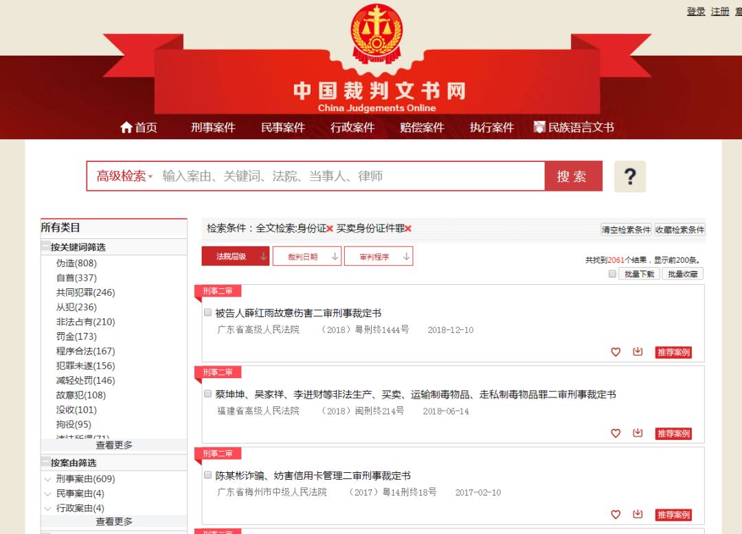 在中国裁判文书网上,检索关键词“买卖身份证件罪”,共得到从2015年至今的2634条搜索结果,且案件数量逐年增长。