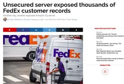 △去年联邦快递还被曝光因服务器管理不善导致大量用户记录被泄露