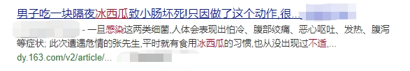而这样的例子并不是第一次发生,由于吃了在冰箱里放过夜的冰西瓜而导致各种不适症状的病例,每年都会出现好几起,以小肠感染最为常见。