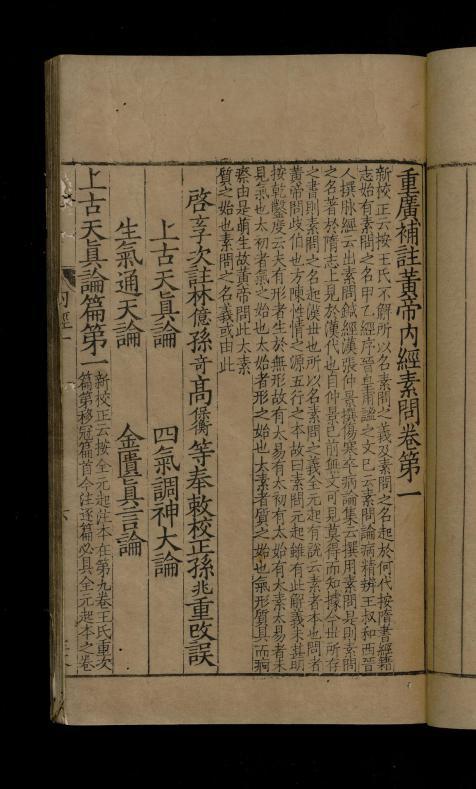 (重广补注黄帝内经素问二十四卷,(唐)王冰注(宋)林亿等校正,(宋)孙兆改误,明嘉靖二十九年(1550)顾从德影宋刻本,十册,馆藏:四川省图书馆)