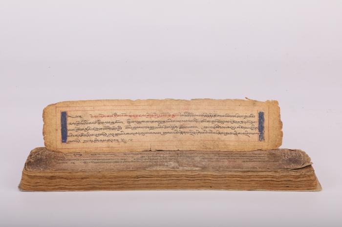 (《四部医典·后续部》,作者:索卡·洛追杰布,16世纪,40 x 9 x 2.8cm,馆藏:青海藏文化博物院)