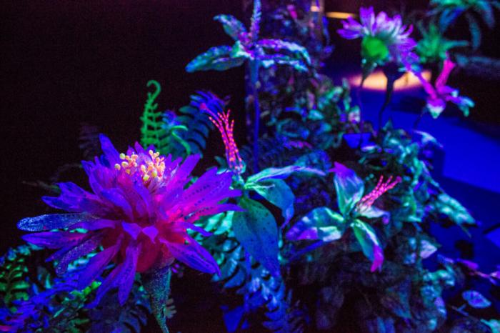 南非艺术家米兰达•莫斯特别创作的互动声音装置作品《含羞的植物》暗示了人与自然之间敏感、脆弱与共生的关系:由废弃物构成的秘密花园笼罩在紫色的光线下,通过程序编码等科技手段,花园中的植物会在受到声音刺激时闭合,恢复宁静后又再度开放,艺术家欲借此展现人与自然如何互相影响。