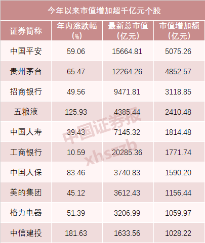 按照全部A股总市值计算,今年以来A股总市值增加额为10.13万亿元。其中,陆股通股票的总市值增加了8.49万亿元,占比高达83.81%!而从沪深两市的几个核心指数来看,偏大市值蓝筹股的市值增加额,明显超过了偏小市值的股票。
