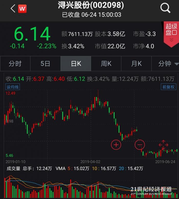 截至2019年6月24日收盘,浔兴股份的股价为6.14元/股,即使与汇泽丰收购停牌前股价相比,也已经腰斩有余。