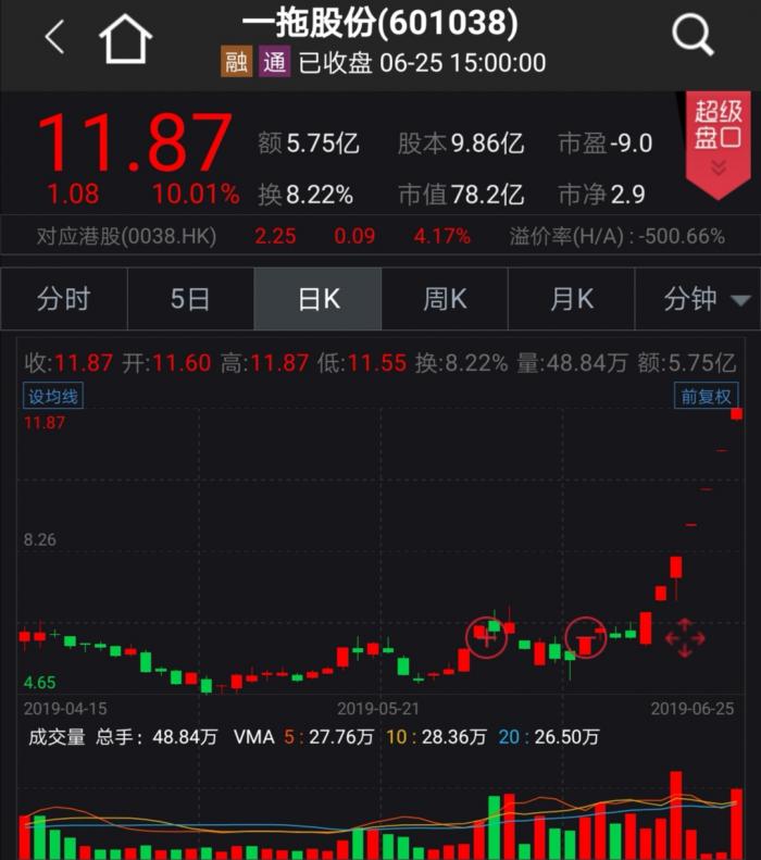 6月25日,垃圾分类概念股一拖股份(601038.SH)股价持续上攻,录得7连板,报11.87元。港股第一拖拉机股份(0038.HK)亦连续7日上涨,近7个交易日涨幅近30%,报2.25港元。