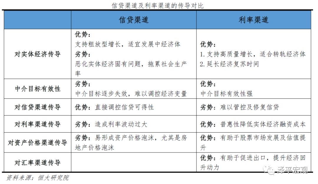 整体来看,货币政策传导渠道之间并非割裂,而是一个整体的系统,但以信贷渠道和利率渠道传导分别形成两种不同的传导路径,对于实体经济有着不同的影响。