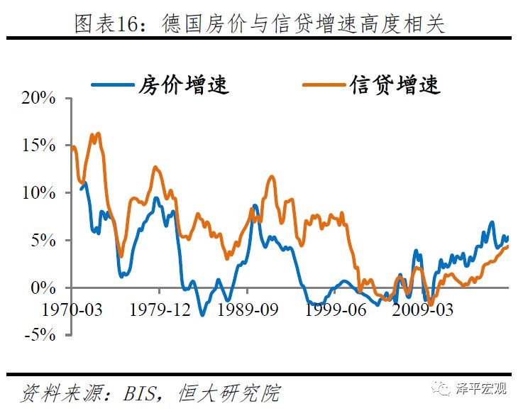 在房价方面,货币政策通过信贷渠道传导极易与房地产价格相互强化。由于信贷渠道传导需要抵押物的固有特性,信贷增长不可避免刺激房地产价格上行,抬升金融周期,同时房地产价格上涨也会进一步刺激信贷增长,两者之间存在明显双向因果关系。这一现象在主要国家及经济体数据中均可得到验证。以韩国与德国为例,两者房价增速与信贷增速相关性均超过0.5。