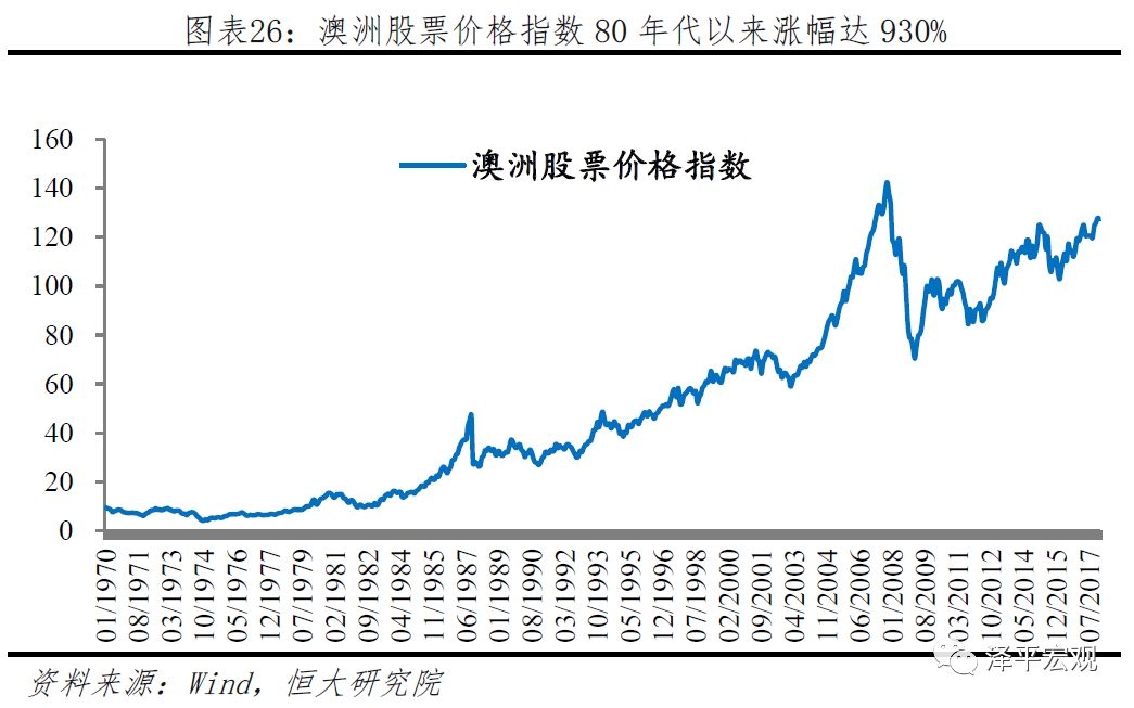 相比于信贷渠道传导容易引发房地产资产价格泡沫,货币政策的利率传导渠道对于股市更加有利。美加澳在80-90年代完成货币政策框架转型后,股票市场均迎来了长牛,道琼斯工业指数、多伦多300以及国际货币基金组织计算的澳洲股票指数在80年代以来涨幅分别达到了2521%、820%及930%。信贷渠道由于和房地产价格的紧密相连,易产生相互强化的倍数效应,而利率渠道对于股市而言,一方面基于未来收入的折现,低利率有利于抬高估值,另一方面,较低的利率能够有效降低企业各项融资成本,提高投资意愿,有利于提升盈利。在估值面以及基本面的双重刺激下,股票市场迎来双重利好,形成长牛走势。