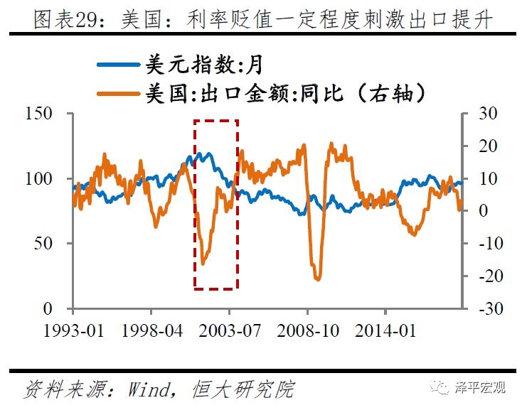(3)对汇率渠道传导:短期的低利率带动本币贬值,从而刺激出口提升,提升经济恢复动力。