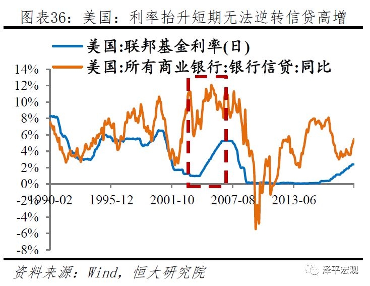 经济过热时,利率渠道传导难以管控信用投放。利率向信贷渠道的传导的原理在于降低金融机构负债成本,提升金融机构信贷投放意愿,此外提升的资产价格提高企业及居民部门抵押品价值,刺激信贷需求。然而过低的利率水平容易刺激信贷过度扩张,进而造成过度投资以及资产价格暴涨。而当采用加息等利率调控的手段时,资产价格收益率远高于利率水平,难以逆转信贷持续高增的现状。持续的加息所产生的滞后效应巨大,实体经济融资成本提升,产出下降,进而引发估值高启,造成资产价格泡沫破裂以及经济萧条。