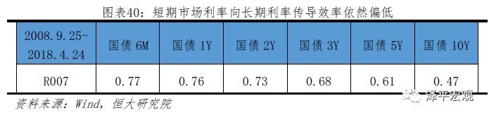 首先,当前我国金融市场依然存在一定摩擦和障碍,需要政策利率体系加以克服。徐忠(2018)指出,当前我国在金融市场制度保障方面,监管制度体系不健全;在金融产品市场方面发展深度仍然相对不足,真正市场化的具有充分价格发现和风险分散功能的金融产品(特别是衍生品)不够丰富。在此背景下,当前我国短、中、长期利率分别对应不同的调控工具,各利率之间的传导关系并不完善,短期利率向长期利率的传导渠道也仍存在障碍。以R007计算的向国债利率的传导相关性来看,对长期利率的传导效率依然偏低。