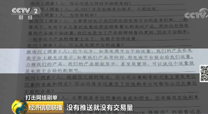 江苏省张家港保税区市场监管局执法大队副队长 刘斌:网络上的平台流量推送制度,就催生了刷单行为存在。作为网络平台来说,你既然催生了这种刷单的行为,那你就有义务,有责任去堵住这个漏洞。