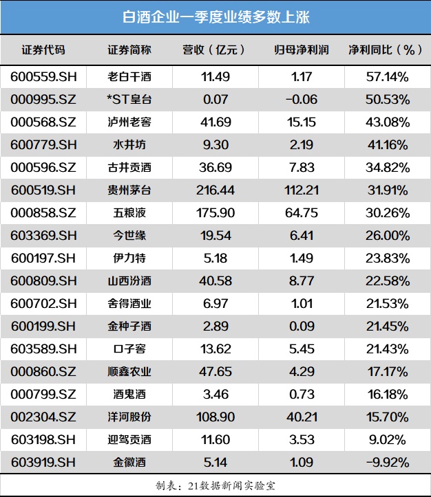 21数据新闻实验室综合多家券商及机构人士观点,普遍认同白酒板块行情将持续演绎但分化明显,高端白酒及行业龙头确定性更强,五粮液、贵州茅台、洋河股份(002304.SZ)、古井贡酒等更受关注。