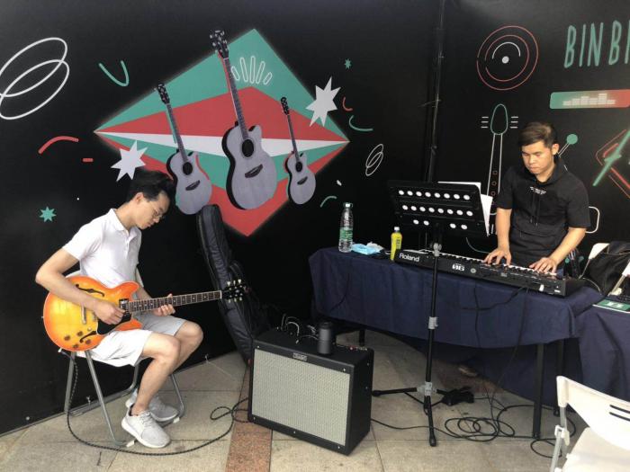 来自广州的年轻爵士音乐人陈启豪受活动主办方邀请来到顺峰山公园活动现场,他对记者表示,很多爵士曲目包含了许多法国的元素,因此他们在自己的空间演奏爵士乐很多法国人也能一下子识别出来。音乐的意义不仅是对外,他补充说,他认为这次中法夏至音乐日的活动还在于可以让顺德本土的市民可以有一个平台跟音乐靠得更近。