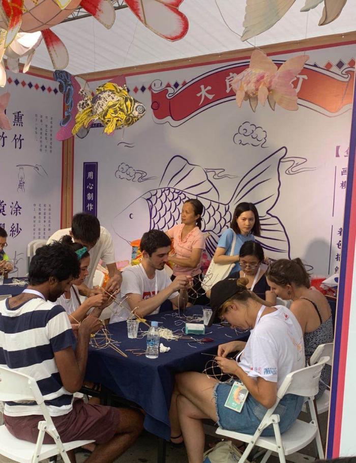 活动举办期间的每天下午到夜间,多个艺术品牌、手工艺品牌、美食品牌摊档汇聚一堂,为当地市民带来汇聚了本土风味和法国情调的“好时生活市集”。记者留意到,参与市集的每一个摊位都挂有顺德当地著名的非遗传承——大良鱼灯为摊位照明,为夜间市集点缀了具有文化内涵的温馨和浪漫。