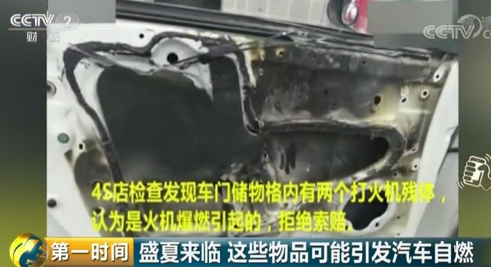 最近,在湖北襄阳就发生了一起车辆自燃事故,整个燃烧过程持续了5分钟,造成左侧车门和驾驶室内烧毁严重。事后经检查发现,车门储物格内有两个打火机残体,初步断定是在太阳的暴晒下,车内温度升高引起打火机爆炸,从而导致汽车自燃。
