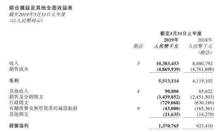 6月26日,波司登如期公布截至2019年3月31日止年度的年度业绩,营收103.83亿元同比上升16.9%,毛利率同比上升6.7个百分点至约53.1%,公司权益股东应占溢利约人民币9.813亿元,同比增长59.4%。提议派发末期股息每股0.06港元。
