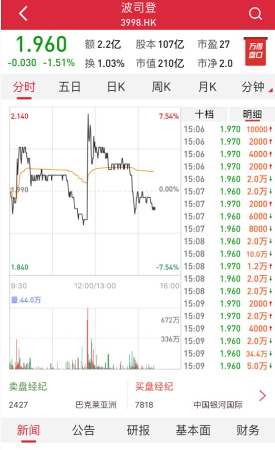 国内多家券商包括中信证券、东吴证券、国金证券声援。6月26日上午,中信证券发布研报,给予该公司“买入”评级,目标价2.84港元,对应2020财年25倍。26日下午,波司在午后大涨之后下跌。