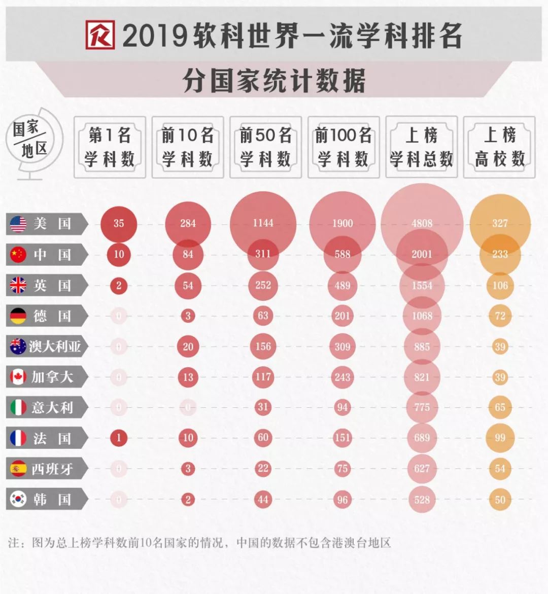 中国内地共有233所高校上榜,上榜总次数2001次,位列全球第二。排名覆盖54个学科,涉及理学、工学、生命科学、医学和社会科学五大领域。