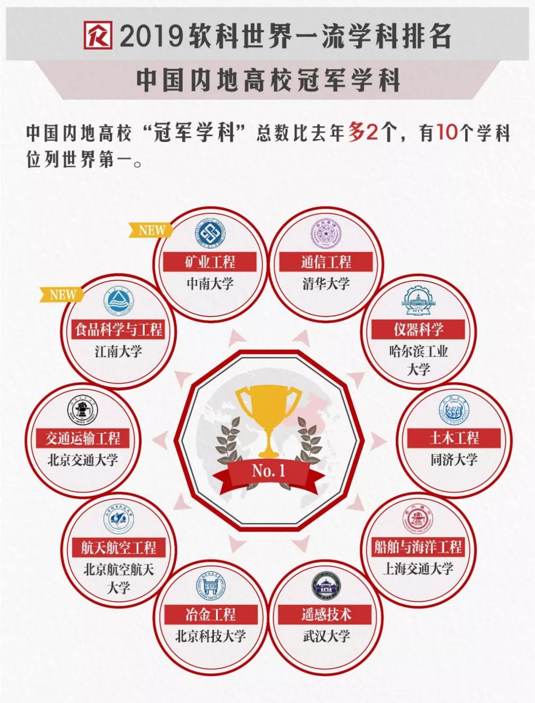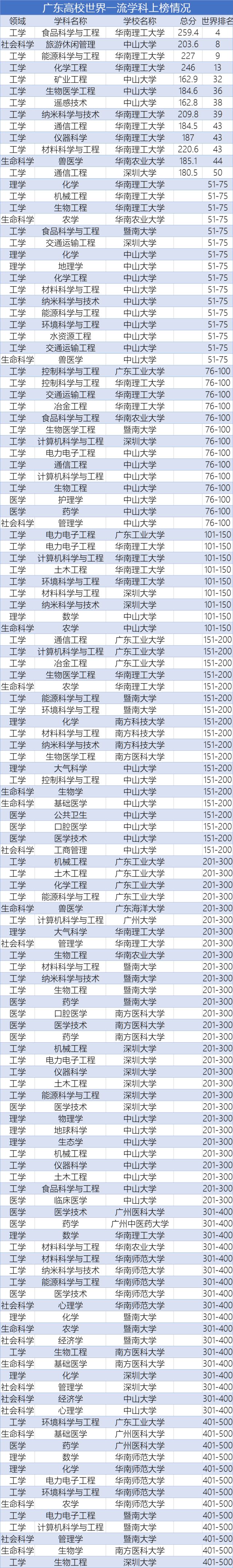 排名最高的是华南理工大学的食品科学与工程,排名世界第4位; 中山大学的旅游休闲管理,排名世界第8位; 华南理工大学的能源科学与工程排名世界第9位。