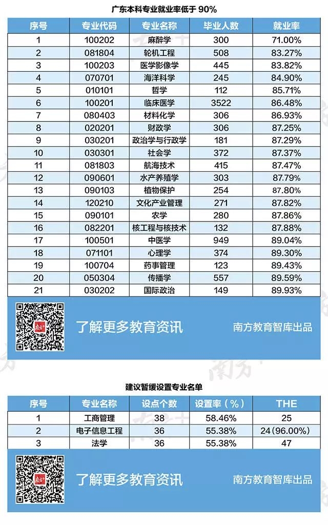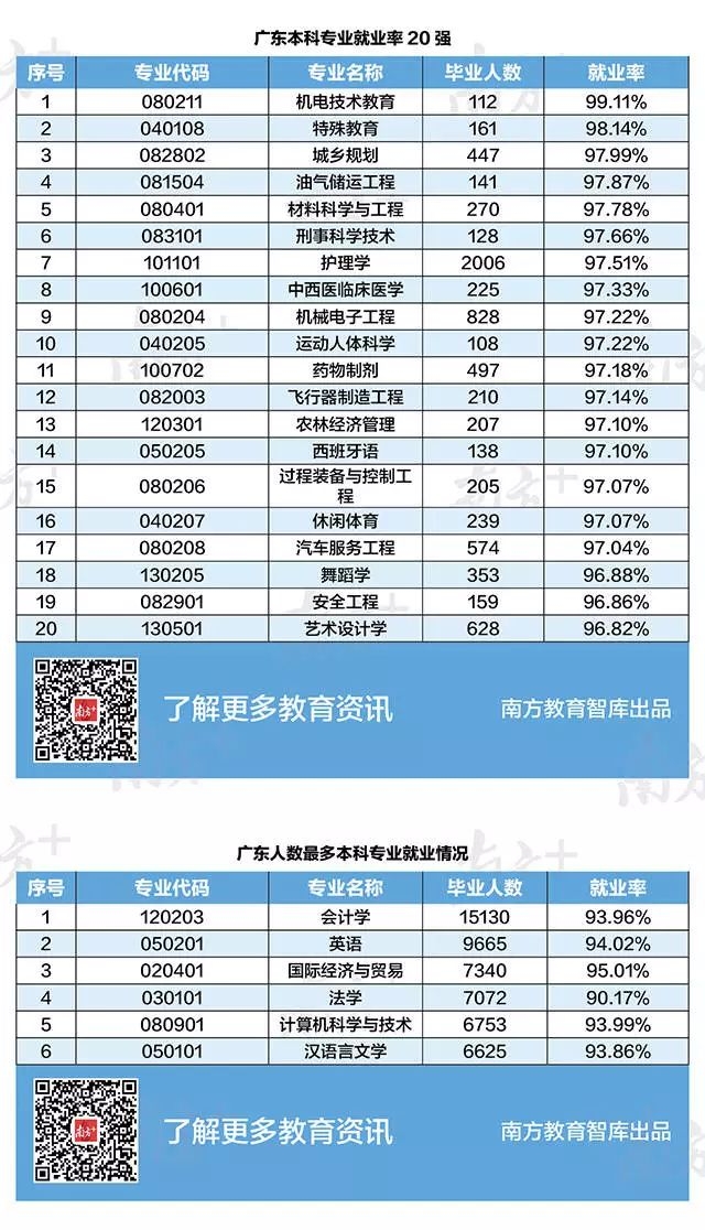 2018年广东本科毕业生初次就业率为93.84%。就业率最高前20名中,属工科类的专业最多,有10个。