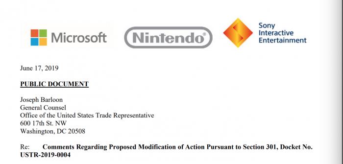微软、任天堂和索尼等三家主要的游戏机制造商在一份发往美国贸易代表办公室(USTR)总法律顾问约瑟夫•巴隆(Joseph Barloon)的联名信中指出,“这些(可能自中国进口的商品加征的)关税对美国消费者和企业造成了不成比例的损害”,并要求免除游戏机的关税,他们称,加征关税将对美国消费者增加总值约8.4亿美元的负担。