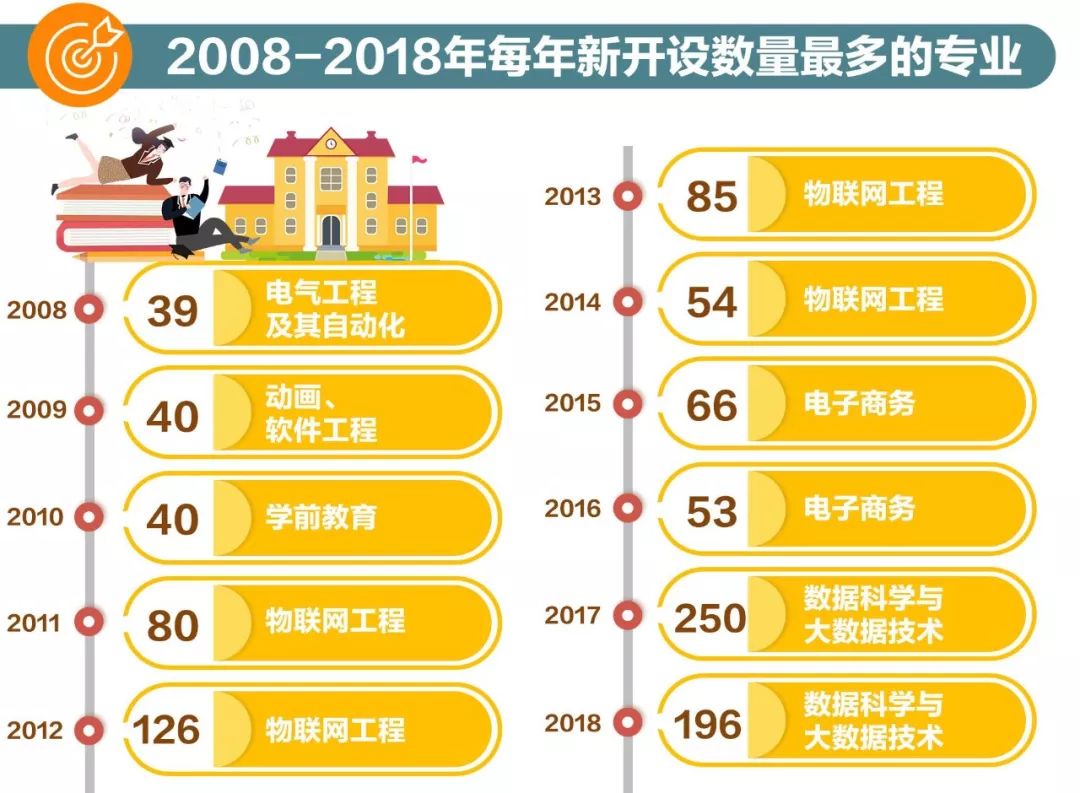 ▲图中数字为当年该专业新开设数量