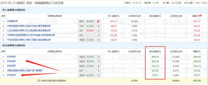 6月27日,中科曙光在停牌三日后迎来复牌,当日无悬念一字板跌停,成交额仅1.16亿元。从当日龙虎榜数据可见,卖出主要来自于机构。